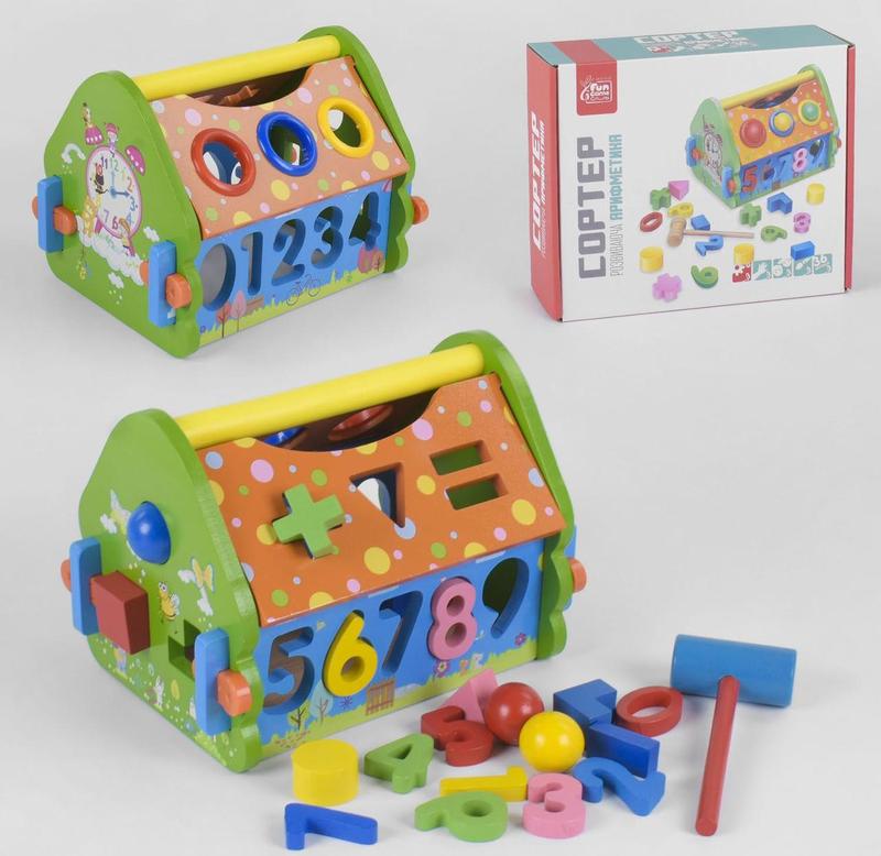 Деревянный сортер "арифметика" "fun game", логический разборной домик, сортер, цифры, фигу...
