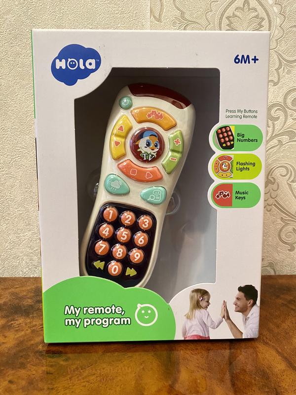 Малюку подобається пульт від телевізора, але батьки не дозволяють ним грати? Не проблема, якщо є іграшковий пульт. Іграшка озвучена англійською мовою. За допомогою цієї іграшки дитина знайомиться з цифрами, формами та кольорами, розвиває дрібну моторику, слух, зір, мислення. На пульті багато різних кнопок, як на теперішньому: 10 круглих для перемикання каналів, голосніше-тихіше , вперед-назад та інші. Вбудовані кумедні мелодії та світлові ефекти. Для віку від 6 місяців. Працює від 2 батарейок AAA (не в комплекті Розмір пульта 16,5 см Розмір упаковки 22-16-5,5 см