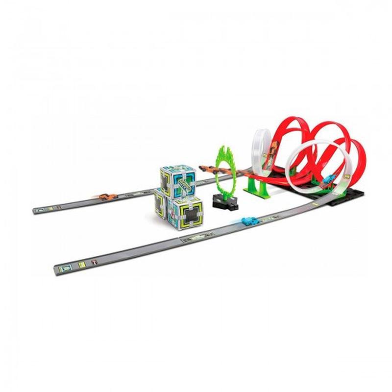 Ігровий набір серії GoGears Extreme «Подвійний вихор» - дивовижний екстремальний трек, що має дві доріжки та 6 петель! - В комплекті 2 машинки, тож Ви можете влаштувати перегони з друзями! - Машинки оснащені інерційним механізмом серії GoGears, розганяються до швидкості 322 км/год та з легкістю долають всі перешкоди. - Загальна довжина треку 25 метрів! - Трек складається з двох стартових доріжок та 6 петель, і закінчується стрибком в 'кільце, що палає'. В комплекті також 3 картонні ящики, які можна використовувати як перешкоди, та розбивати. - Трек можна перебудовувати! Створіть свої екстремальні перешкоди для крутих трюків. У наборі: • трек з двома доріжками, петлями, кільцем для стрибків та ящиками для перешкод • 2 машинки з інерційним механізмом масштабом 1:55. Розміри набору в зібраному вигляді: 110 x 48 x 25 см. Рекомендовано для дітей віком від 3 років.