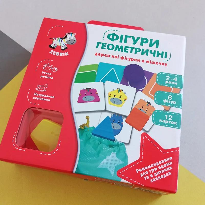 Вивчайте геометричні фігури в ігровій формі з набором ТМ Vladi Toys! Фігури виготовляють із натурального дерева вручну. Сортер розвиває дрібну моторику, увагу, пам’ять і логіку. Як гратися? Сортер можна використовувати у різний спосіб. Виберіть картку і навпомацки знайдіть у мішечку фігуру, яка на ній зображена. Підбирайте фігури за асоціацією з малюнком. Вивчайте кольори та геометричні форми. Комплектація: 8 дерев’яних фігурок, 12 карток, мішечок. Продукція ТМ Vladi Toys сертифікована згідно зі стандартами Директиви якості дитячої продукції країн ЄС. Виробництво відповідає принципам Кодексу ділової етики amfori BSCI.