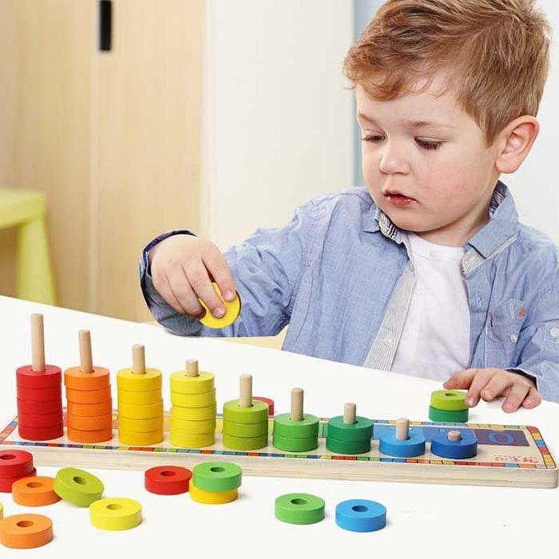 Сортер Top Bright 6540 Учимся считать -- это деревянная головоломка для детей от 2 лет. Представляет собой деревянную панель со шпильками разной длины для разноцветных колец и отсеками для карточек с цифрами от 0 до 9. Цель занятия -- в отсек с цифрой на домино вставить карточку с изображенной цифрой, а на палочку напротив цифры нанизать такое же количество колец. Чтобы карточки легче было вынимать из доски, на них имеются вырезы. Сортер и все его элементы изготовлены из дерева, окрашены краской на водной основе и не имеет «кислотного» запаха. Развивает мелкую моторику, координацию движений, логическое мышление, память, внимание и усидчивость. Игра вместе с родителями доставит большее удовольствие.