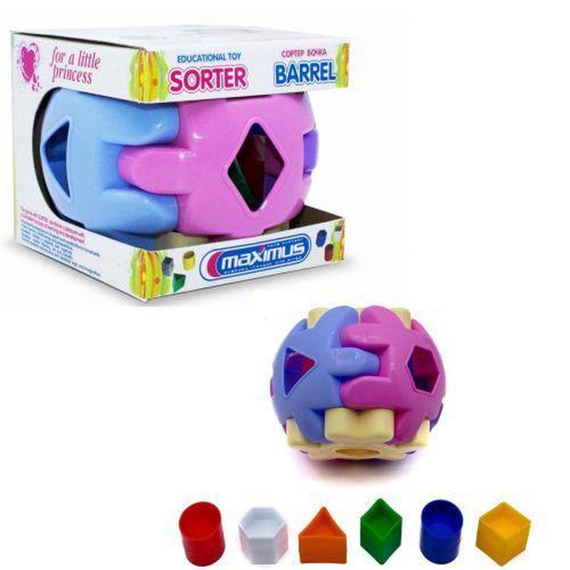 Конструктор 3д сортер бочка maximus розовый 12 элементов, в коробке 13*15*15см, 5335