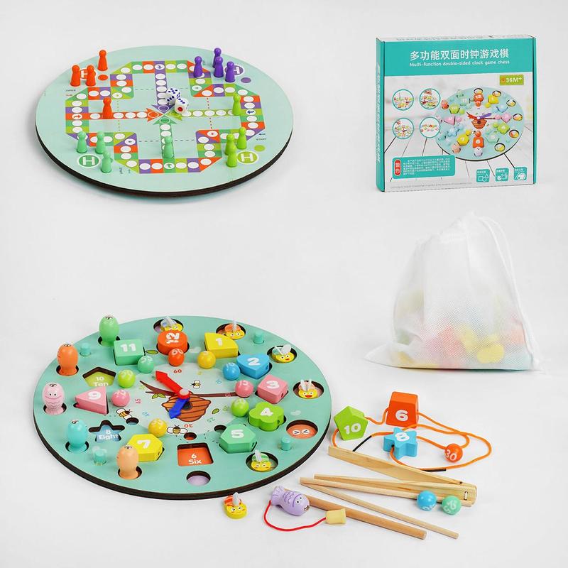 Игрушка деревянная Часы логические. Веселая логическая игра не даст малышу скучать: столько игр в одной игрушке он еще не видел! Выполненная в форме забавных часов, деревянная игрушка включает в себя: сортер, игру-шнуровку, магнитную рыбалку, эмоциональных пчелок, шарики-минуты, а также настольную игру на обратной стороне. Все элементы выполнены из качественных материалов и не имеют острых углов. Приятная цветовая гамма игрушки обязательно понравится не только ребенку, но и его родителям. Особенности: - высокое качество исполнения; - содержит 6 разных игрушек; - игровые элементы не содержат острых углов и безопасны для малыша; - игрушка способствует всестороннему развитию ребенка: мелкой моторике рук, логическому мышлению, цветовому восприятию. – помогает тренировать внимательность и координацию движений. Комплектация: - 12 кубиков-часов с соответствующими цифрами; - 12 шариков-минут; - 6 рыбок; - 5 пчелок; - 16 столбиков; - игральные кости; - 2 палочки; - пинцет; - удочка с магнитом; – мешочек для удобного хранения мелких элементов. Внимание. Производитель оставляет за собой право изменять комплектацию, цветовую гамму и характеристики товара без предварительного уведомления. После оформления заказа мы свяжемся с Вами в течение 2-х часов и если у Вас возникнут вопросы, мы с радостью на них ответим.
