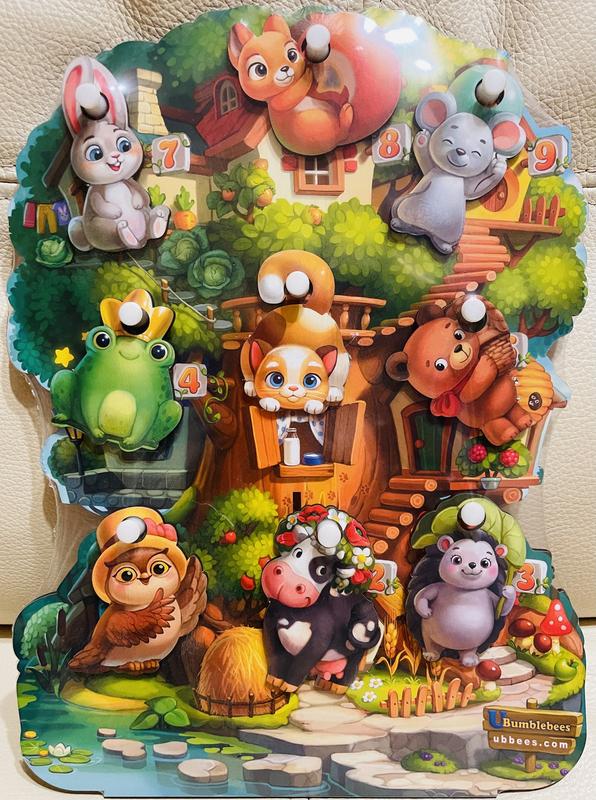 Детская развивающая игра "Волшебное дерево: учим предлоги" Размеры: 31 х 23 см. Дерево с подставкой. У каждой плашки с животным (9 животных) есть дырочка, чтобы прикрепить его к домику. Отработка предлогов: предложите ребенку усадить зайчика справа от белки и слева от совы (да, животные ходят в гости). Точно также "сверху и снизу", "кто где живет?"