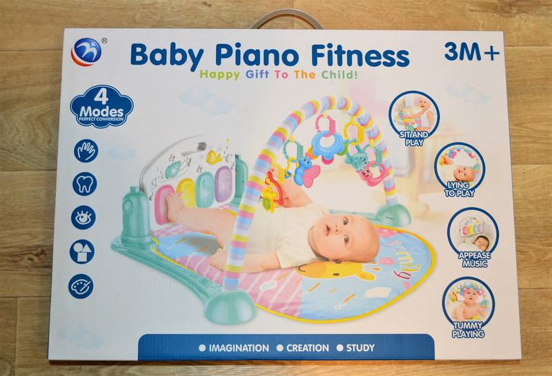 Дитячий килимок Baby Piano Fitness розвивальний музичний килимок дитячий килимок з піаніно килимок з дугами Дитячий музичний килимок - тренажер. Відмінна розвивальна іграшка для Вашого малюка. М'який, яскравий, приємний на дотик килимок з кумедними іграшками, безпечним дзеркальцем і музичним піаніно стане незамінним для діток від народження, і до 12 місяців. Компактний килимок сприяє розвитку дрібної моторики, звукового і світлового сприйняття, уяви, логічного мислення, концентрації уваги, він також познайомить малюка з різними формами і кольорами. З таким багатофункціональним килимком ви забезпечите дитині відмінний ігровий простір і веселе проведення часу в будь-якому зручному місці. Піаніно можна розмістити і в горизонтальне положення, коли дитина вже буде сидіти. На килимку є зростомір.