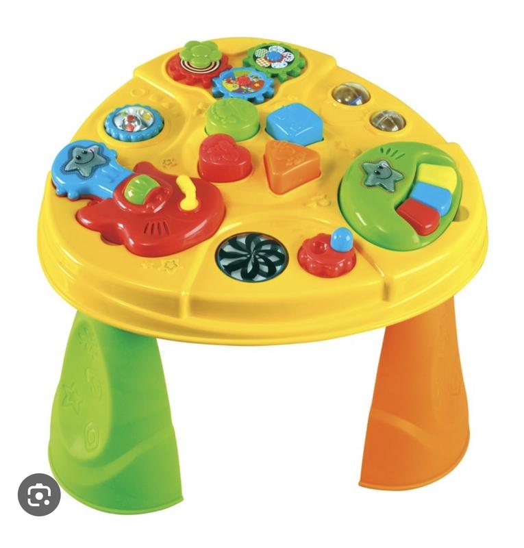 My First Music Center предоставит вашему ребенку множество возможностей поиграть и открыть для себя мир музыки! На сказочно-цветочном столе разноцветные гитары и пианино, которые при нажатии издают радостные звуки, а на них сияют звезды. На столе также игрушки, погремушки и сортировщик, все это не только надолго акцентирует внимание ребенка, но и помогает развить зрительно-моторную координацию и слух. Изделие соответствует требованиям безопасности! деткам 1 до 2 лет будет интересно. В очень хорошем состоянии. С коробкой! Но маленькой нюанс (противилась цветочка при транспортировке, смотри фото 4).