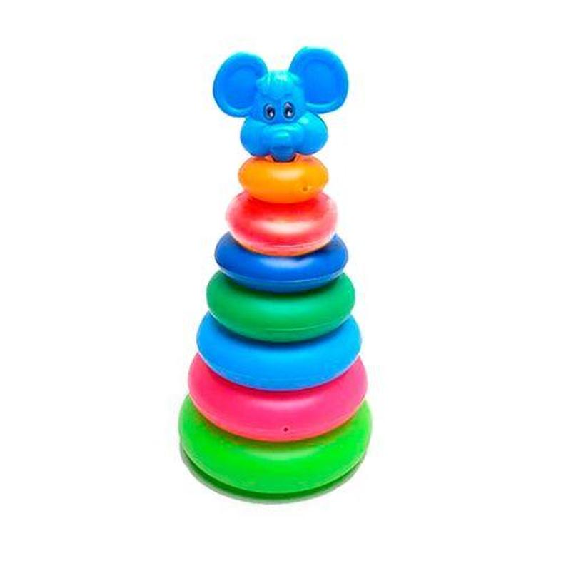 Яркая пластиковая пирамидка "Мышонок". Состоит из 7-ми колец разного размера и верхушки в форме мышки.