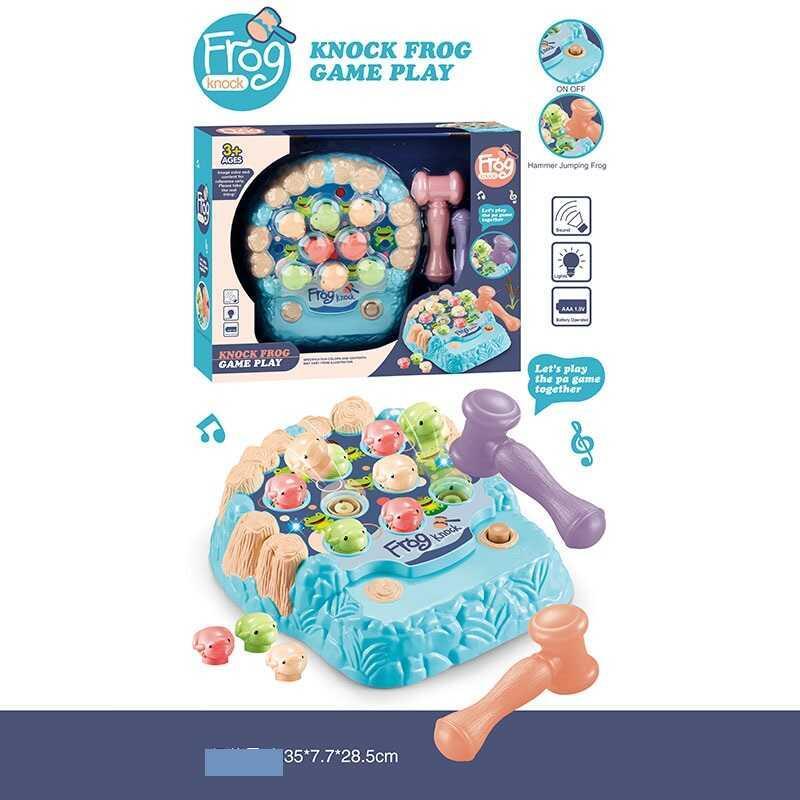 Попробуй поймать быструю лягушку с новым игровым набором Frog Knock. Яркая игровая платформа выполнена в виде пруда, на котором беззаботно живут 8 маленьких лягушат, периодически выпрыгивая из "воды". Игрушка направлена на развитие мелкой моторики и координации движений, сенсорно-зрительного восприятия, а также скорости реакции и меткости. Особенности: - игровое поле представлено в формате небольшого водоема с лягушонками; - к комплекту прилагаются 2 молоточка; - игровая платформа подсвечивается; - игрушка оснащена звуковыми эффектами; - тип питания - 3 батарейки "ААА" (не прилагаются); - игрушка изготовлена из качественного первичного пластика, безопасного для здоровья ребенка. 35 см × 8 см × 28.5 см * Характеристики и комплектация товара могут изменяться производителем без уведомления
