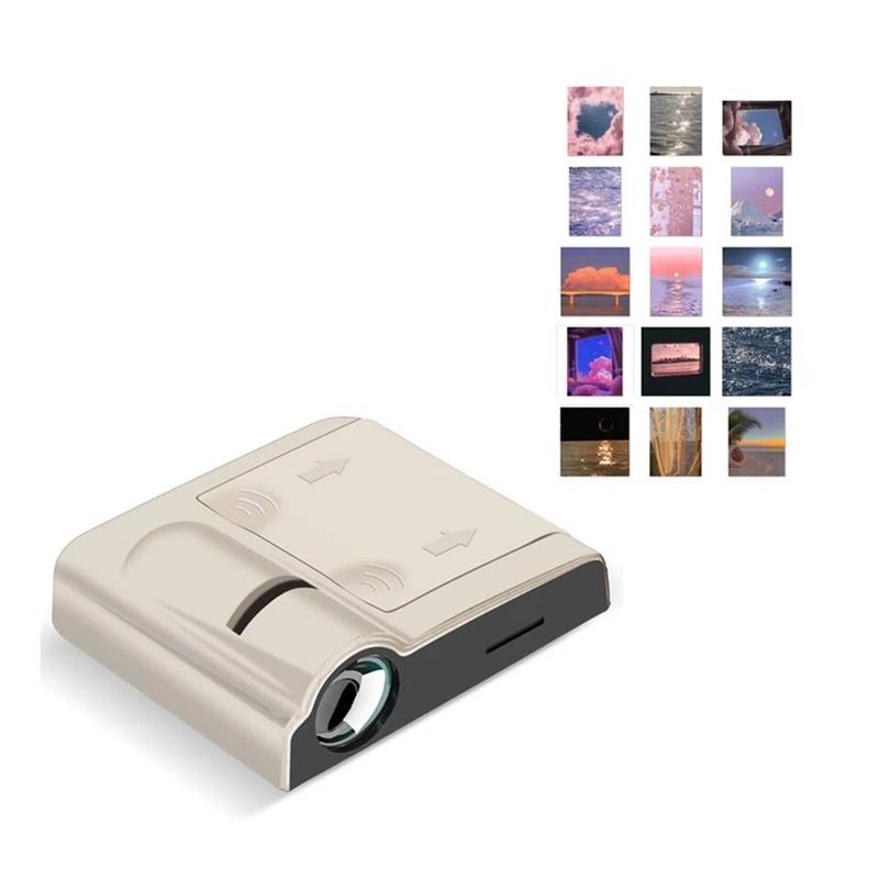 Мини-проектор для создания романтической атмосферы, фона для фотографий/видео и просто уютного вечера. Комплектуется 15 слайдами-линзами с разными изображениями луны, земли, космоса. Помещаются данные линзы в специальное отверстие в корпусе, без линз проектор может использоваться в качестве светильника. Размер изображения на стене зависит от расстояния, на котором размещен проектор. Можно использовать как фон для фото и видео, или как ночник для детей. Питание: от 3 ААА батареек (в комплект не входят) Материал: пластик Размер: 6.6 x 6.3 x 2 см Вес: 27 г