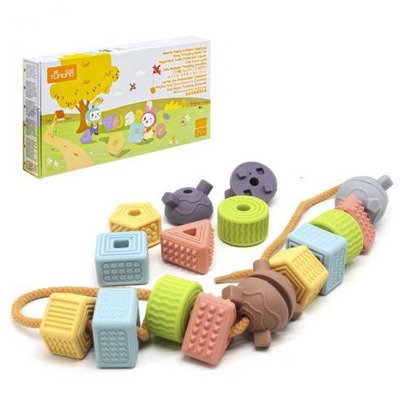 Захоплююча дитяча гра, суть якої полягає в тому, щоб малюк одягав бусинки на мотузку. Добре розвиває логіку та дрібну моторику рук. У наборі 18 гумових "намистин" різних кольорів та форм. Набір виконаний із якісних та безпечних матеріалів.