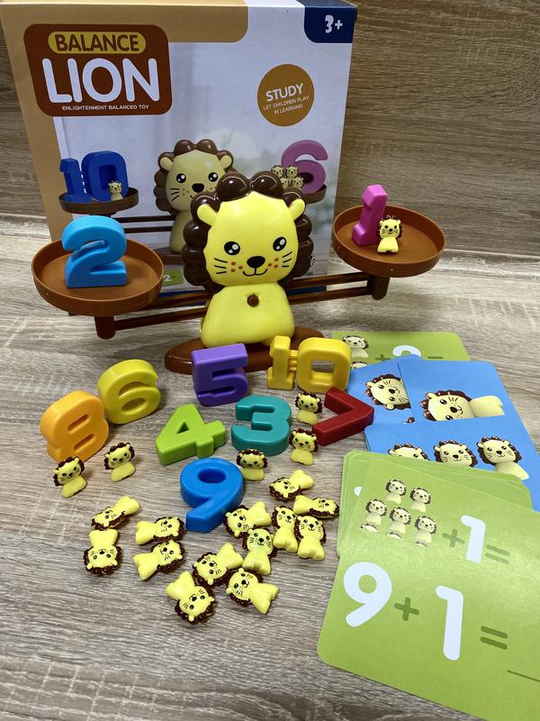 Чудовий набір Балансир для вивчення цифр , рахунку та розв’язування прикладів . Такий ігровий набір допоможе дошкільнятам освоїти перші знання з математики . В комплекті вага ( 33 - 17 см ), 10 цифр (різної ваги) , 19 фігурок та 30 карточок з завданнями. Розмір упаковки 26,5-26,5-7 см