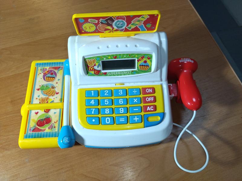 Продам детскую игрушку, кассу. работает от батареек, в рабочем состоянии. сканер, микрофон, кнопки используются как калькулятор, карточка,монеты.