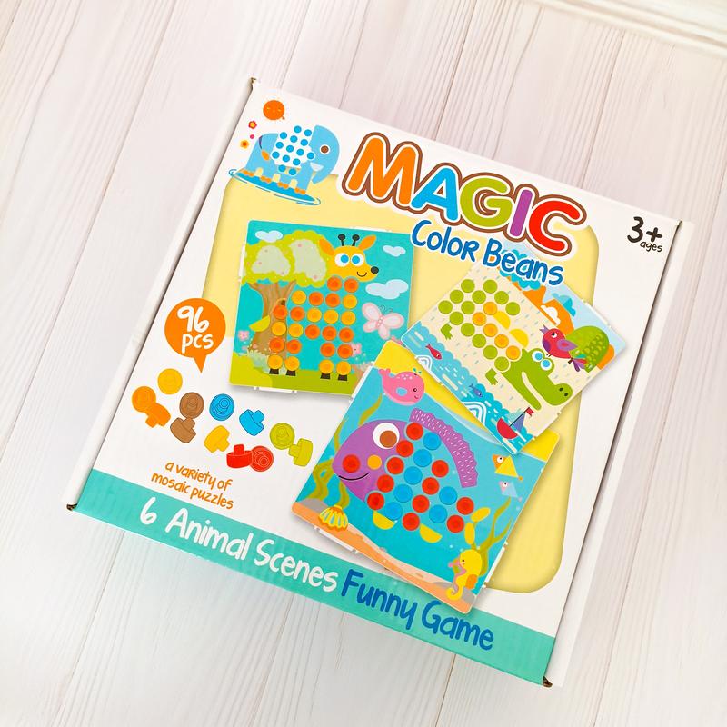 Яркая мозаика для малышей 🤩 ✨ 6 ярких сменных картинок-трафаретов; ✨ 96 разноцветных больших кнопок; ✨ подставка для выкладки мозаики; ✨ книжечка-инструкция с примерами сборки рисунков. Возраст: от 3 лет