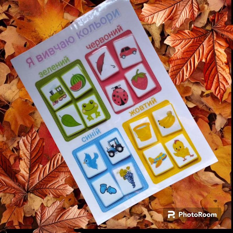 Ребенок учится соотносить предметы по цвету, развивает память, внимание. Игра состоит из листа А4 и 16 деталей на липучках.