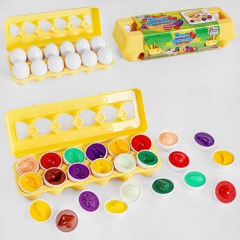 Набор для развития овощи и фрукты 3d сортер 4fun game club, яичный лоток, 12шт, 48666