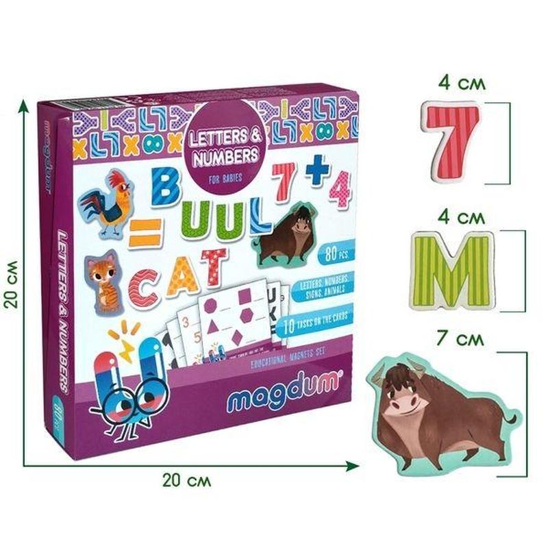 Набір магнітів "Літери, цифри" буде гарним подарунком для дитини. У наборі є 80 магнітиків. Розмір 1 магнітика — 5-6 см. товщина — 3 мм. Виконані з якісного матеріалу. Для дітей від 3 років. _ Бренд: Magdum Паковання: Коробка Колір: Різнобарвний Вага в упаковці: 380 г Габарити в упаковці: 20.5 x 20.5 x 4 см Страна виробник: Україна Матеріал: Комбінований Комплектація: 80 магнітиків