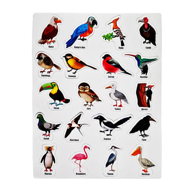 Набір магнітних фігурок "Птахи" від виробника Artos з реалістичними зображеннями птахів. Магнітні фігурки допоможуть дитині познайомитися з тваринами, навчитися розрізняти їхні розміри, класифікувати за особливими ознаками. Магніти великі, міцні, безпечні, практичні.