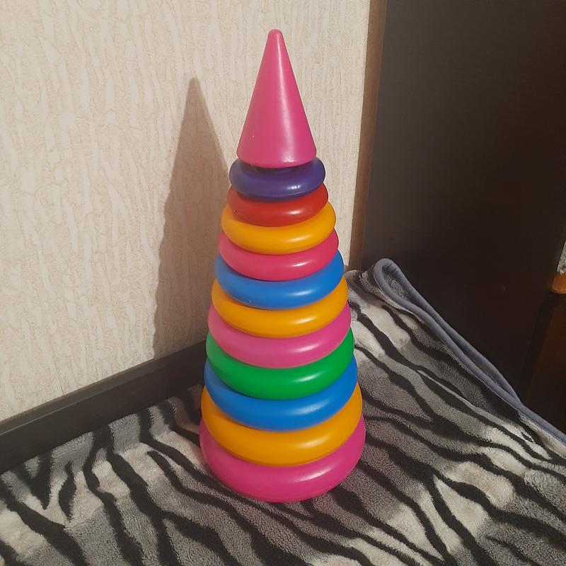 Продам піраміду на 12 деталей. стан чудовий. на червоному кільці вм'ятинка, а в іншому без дефектів. купували в дитячому магазині за 270 грн