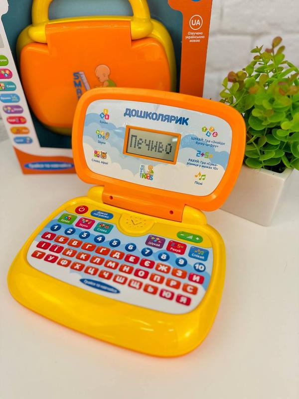 💻ДИТЯЧИЙ НОУТБУК💻 Артикул: 1555 👉НАЯВНІСТЬ👈 ✍️Опис: Інтерактивний Дитячий ноутбук 💻 це центр, що розвиває та навчає для маленьких непосид🧒 Клавіатура з українським алфавітом🇺🇦цифрами🔢та різнокольоровими кнопками⌨️що перемикають режими роботи. При натисканні на кнопки🔘включення починає грати весела музика🎼та звучить вітання українською мовою👋Гід іграшки розповідає, що входить у навчальну програму для дуже молодих учнів. 8 режимів навчання: 🔤Літери та цифри🔢 (назви та звучання) Звуки🔊 (голосні та приголосні) Правопис✍️ 🧑🏫Іспит (проходження пройденого матеріалу)👩🏫 💱Приклади на додавання та віднімання2️⃣➕2️⃣🟰❔ 🎵Музика🎶 ✔️Вставити пропущені літери в словах Віршики📖 Працює від 3 батарейок🔋типу АА (в комплект не входять) 👼Вік 3+ 📐Розмір: 22x21x5см