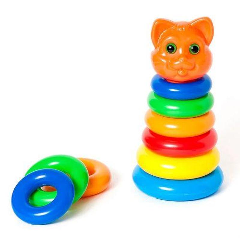 Пирамидка, 6 колец, верхушка кошка. Пластик._
