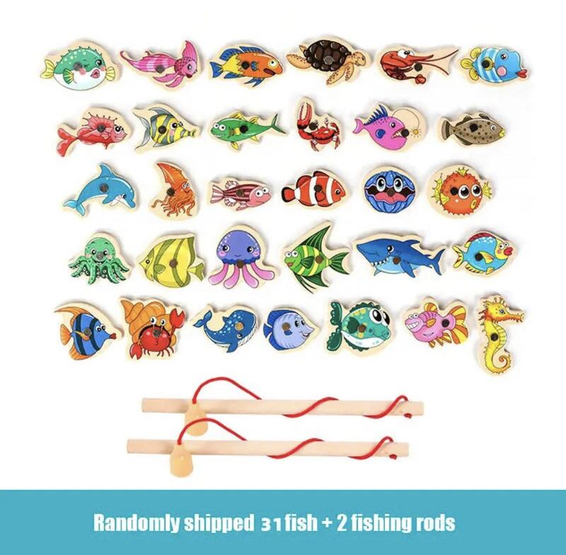 Обучающая игра, позволяющая ребенку почувствовать себя настоящим рыболовом. В каждую фигурку встроен магнит. В комплект также входит 2 удочки, у которых вместо рыбацкого крючка установлен магнит. 30 ярких рыбок. Игрушка выполнена из качественного дерева, безопасного для детей.