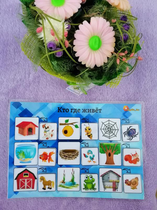 Стать: Унісекс Вік: 2 роки Тип іграшки: Інший тип іграшки Матеріал: Інший матеріал Гра, на липучках, яка весело і цікаво навчить вашого малюка логічно мислити і міркувати. З допомогою цієї гри, дитина зможе не тільки вивчити тварин, але і вивчити хто, і де з них живе. Зіставити тварин, і їх будиночки. Також гра розвиває дрібну моторику, мислення, логіку. Гра російською та українською мовами. Рекомендований вік 2+ Ігрове поле і картки покриті щільною плівкою для ламінації, липучки відмінної якості, яскрава друк на щільному фотопапері.