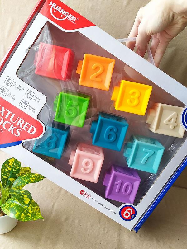 Детские сенсорные силиконовые тактильные кубики с пищалкой (набор из 10 шт.)