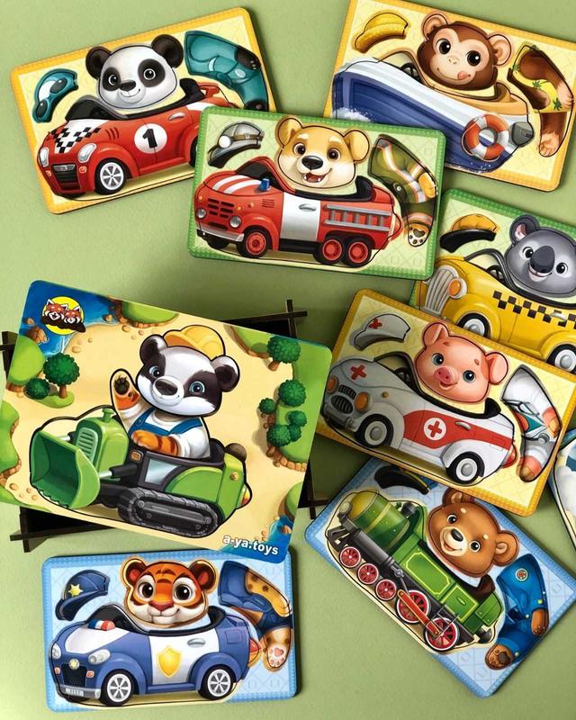 Гра складається з цілого набору різних деталей для сортування: 10 видів техніки, 10 тварин (голова та тулуб теж розділені) і 10 головних аксесуарів. Завдання дитини правильно зібрати образ, як це зазначено в заданні (в наборі 10 карток із кожною твариною) або, навпаки, збирайте тварин так, як Вам сподобається. Всі деталі взаємозамінні, тому Ви можете посадити панду в трактор, а можете в літак, одягнути на неї окуляри пілота або каску пожежника. 1. Розвиток логічного та зрозумілого мислення. 2. За допомогою такого методичного матеріалу діти пізнають навколишній світ. 3. Розвивається дрібна моторика. Доставляючи та вставляючи певною мірою деталі сортера, діти чудово тренують пальчики. 4. Працює зорова пам'ять, тренується увага та посидючість.