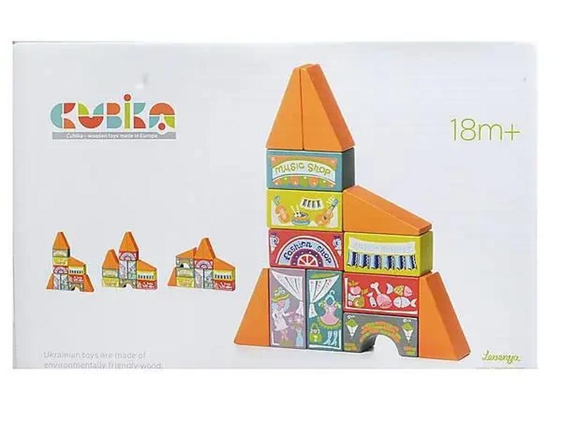 Дерев'яний конструктор Казкове місто Cubika LKM-4 12367 Казкове місто LKM-4 12367 - це дерев'яні кубики українського виробництва ТМ Cubika, еко-іграшка з карпатського дерева для діток від 1,5 років. Кубики Казкове місто складаються з 13 деталей різних за кольором, формою і розмірами. Ігровий набір Місто LKM-4 12367 Кубика: розвиває моторику рук, знайомить дитину з квітами, дозволяє навчитися підбирати колірні гами, навчає дитину розрізняти різні форми і геометричні фігури (у процесі гри дитина навчиться поєднувати різні за формою і квіти фігури) розвиває логічне мислення дитини (крім передбаченого конструктором способу дитина завжди може скласти з його складових образ за своїм проектом) розвиває соціальні навички, підходить для групової гри.