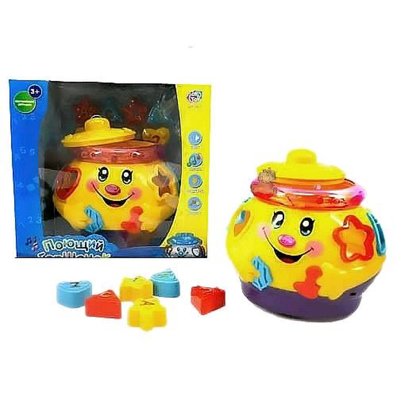 Тип іграшки: Інший тип іграшки Кілька примірників у наявності Сортер "Поющий горшочек" — замечательная развивающая игрушка для детей, возрастом от 6 месяцев. Игрушка имеет чудесное веселое личико, носик-кнопочку и 6 отверстий разных геометрических форм. Игрушка развивает мелкую моторику пальчиков и тактильные ощущения, укрепляет мышцы ручек малыша, поощряет любопытство. "Поющий горшочек" предоставляет ребенку возможность ежедневной практики, формирует восприятие цвета и формы, способствует развитию логического мышления. Горшочек; Крышечка; 6 кубиков-фигурок (сердечко, пирамидка, звездочка - по 2 шт.). Игрушка сделана из пластмассы. Игрушка работает от обычных батареек класса AAА.(В комплект не входят). Размер: 17*17*15 см Упаковка: картонная коробка