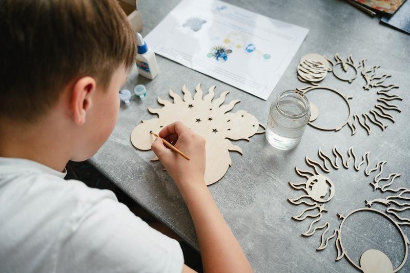 Дерев'яна 3д розмальовка У творчий набір входять: дерев'яні деталі (5 шарів); кісточка і акрилові фарби; клей ПВА; кріплення; інструкція. Додатково ви можете придбати круглий панно 30 см. Кольори панно: чорний / білий, сірий /та не фарбоване. Додаткові характеристики: Стать: Унісекс