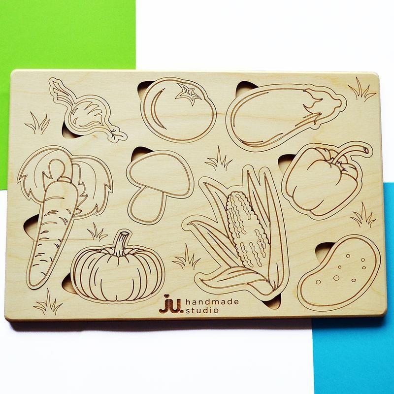 Рамка вкладыш "огород", деревянный пазл сортер для детей.