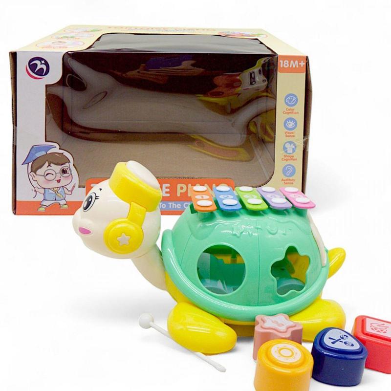 Игровая каталка в форме черепашки, которая станет отличным спутником для вашего малыша в процессе его развития. Когда ребенок тянет за шнурочек, черепашка начинает двигаться, а ее голова вращается. На спине черепашки расположен ксилофон, который призван развивать музыкальные навыки малыша, а по бокам - сортер с геометрическими фигурами, помогающий развивать моторику рук и знакомиться с формами и цветами. Бренд: MIC Упаковка: Коробка Цвет: Мятный Вес в упаковке: 660 г Габариты в упаковке: 21 x 29.5 x 17 см Cтрана производитель: Китай Материал: Комбинированный Комплектация: Каталка-ксилофон, 4 фигуры, палочка
