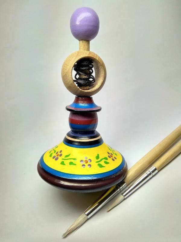 Деревянная игрушка, деревянная юла, деревянный волчок, ручная роспись, развивающая игрушка, расписной сувенир. Наши сувенирные игрушки изготовлены из лиственных и хвойных пород карпатской древесины. Каждая деталь выточена вручную и идеально отшлифована. В работе используются только биокраски и биолаки, что дает возможность использовать наши изделия не только как сувенир, но и в качестве детской развивающей игрушки. Диаметр ~6-7см Высота ~10см Юла - незаменимый помощник в развитии мелкой моторики рук и координации движений. Деревянные игрушки приносят большую пользу для детей, помогают почувствовать связь с природой и ощутить тепло живого дерева. Неотъемлемое достоинство деревянной игрушки - её ДОЛГОВЕЧНОСТЬ. Дополнительные характеристики: Материал : Дерево Вид : Волчки