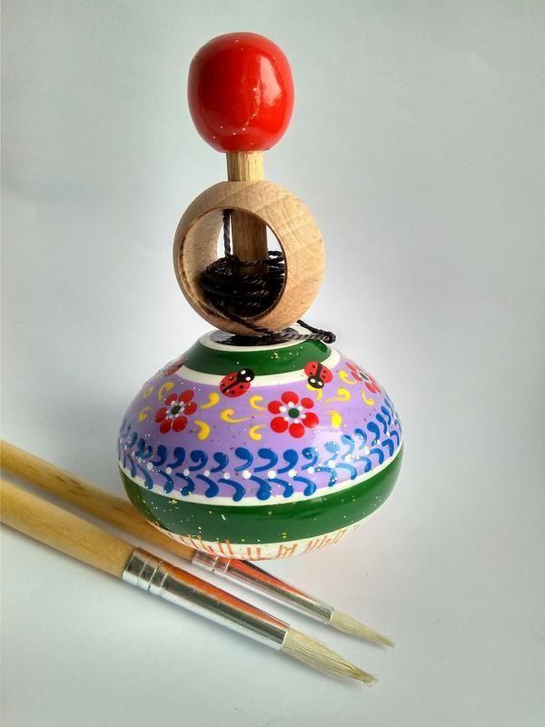 Деревянная игрушка, деревянный волчок, деревянная юла, ручная роспись, развивающая игрушка, расписной сувенир. Диаметр юлы ~5-6см Высота юлы ~10см Юла - игрушка, которая в игровой форме развивает координацию движений, ловкость и мелкую моторику . Каждая игрушка выточена и расписана вручную. В работе использованы только водорастворимые лаки и краски, предназначенные для детских игрушек . Юла - не просто игрушка, это и отличный сувенир. Им можно порадовать в любом возрасте, подарив возможность снова окунуться в детство. Если Вы среди разнообразия наших работ не нашли юлу Вашей мечты, мы можем выполнить роспись с учётом Ваших пожеланий. Дополнительные характеристики: Материал : Дерево Вид : Волчки