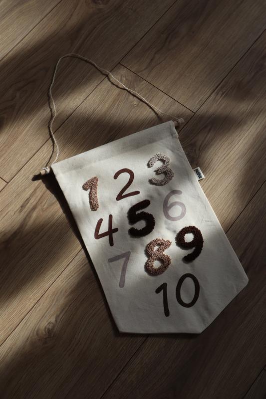 Панно з цифрами Оригінальний декор у дитячу та розвиваюча іграшка для дітей В наявності також панно абетка (укр., англ.) Натуральна бавовна, килимкова вишивка.
