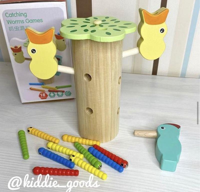Гра нагодуй пташку деревʼяна, хробачки, накорми птенца
