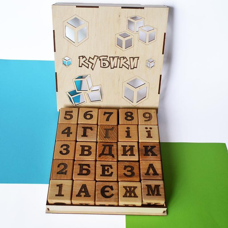 Деревянные кубики "цифры + буквы" 25шт. украинский.
