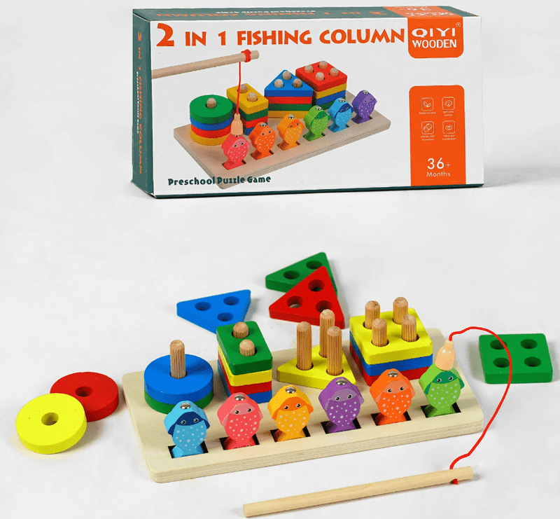 Цветные рыбки выискивались в рядочек и ждут новые указания, поэтому бери удочку и перемещай их до тех пор, пока не расставит морских обитателей, как тебе по вкусу. А рядом с ними можно рассортировать различные деревянные фигурки по количеству углов и создать яркие пирамидки. С этой игрой можно не только весело провести время, но и натренировать моторику рук, координацию движений, зрение и логическое мышление. А благодаря тому, что игрушки изготовлены из дерева такая игра будет полностью безопасной для ребенка и развивать ощущение прикосновения. Особенности: - в наборе есть доска с колышками и отверстиями для рыбок; - есть красочный геометрический сортер; - к сортеру прилагается по 4 элемента одной фигуры, что позволит создать полноценные пирамидки; - к игре прилагается 6 ярких рыбок и удочка; - игра развивать моторику рук, координацию движений, зрение и логическое мышление; - игра полностью изготовлена из дерева. Размер упаковки: 22 х 11 х 5 см