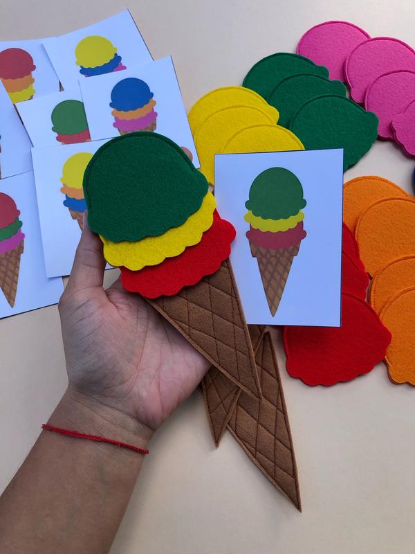 Развивающая игра Сортер мороженое В наборе карточки 8 шт 24 шарика мороженого и 3 рожка Цена набора 400 грн Под заказ