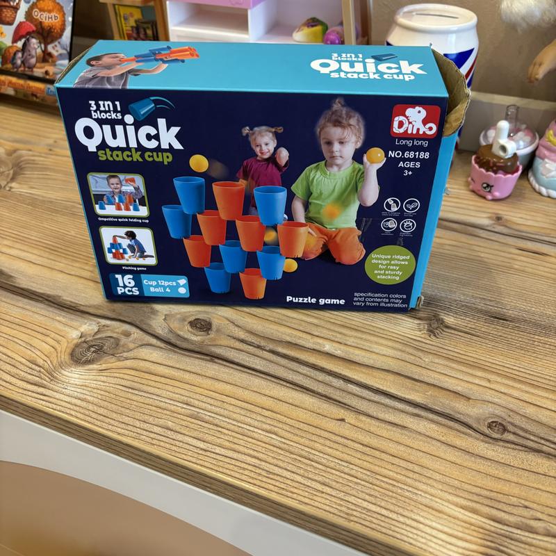 Розвиваюча гра Quick stack cup 3 in 1 для малюків, яка розвиває увагу та моторику. 16 стаканчиків-пазлів та 4 мячика. стан ідеал