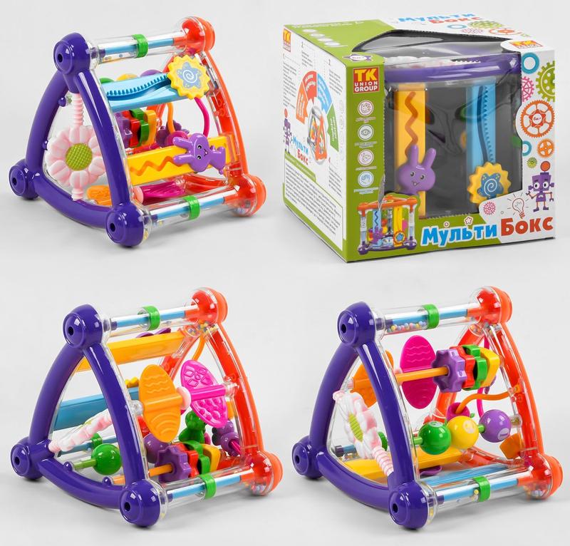 Ваш малыш придет в полный восторг от развивающей и необычайно яркой игрушки Мультибокс 65590, от качественного производителя “TK Union Group”. Игровая модель представляет собой интерактивный треугольник, обладающий широкими функциональными возможностями, где каждая сторона оснащена увлекательными играми. Мультибокс изготовлен из первичной пластмассы, окрашен высококачественными красками и дополнен прозрачными трубками в которых находятся маленькие разноцветные шарики. По всей поверхности игрушки, пластик, создает приятные блики, что свидетельствует о качестве и насыщенности игровой конструкции. Игровые грани: 1. Вращающиеся листики с различной фактурной поверхностью. 2. Фигурный пальчиковый лабиринт с цветными бусинами и веселыми пчелками. 3. Счеты с 3-мя разноцветными шариками и геометрическими фигурками. 4. Вращающееся безопасное зеркальце в виде красивого цветочка. 5. Два тренажера для разработки запястий. В процессе увлекательной игры с интерактивным треугольником, кроха будет развивать координацию движений, тактильное, звуковое и слуховое восприятие, мелкую моторику ручек, а также потренирует память и внимательность. Размер упаковки: 21 см × 19 см × 19 см Отправляем Новой почтой и УКР почтой