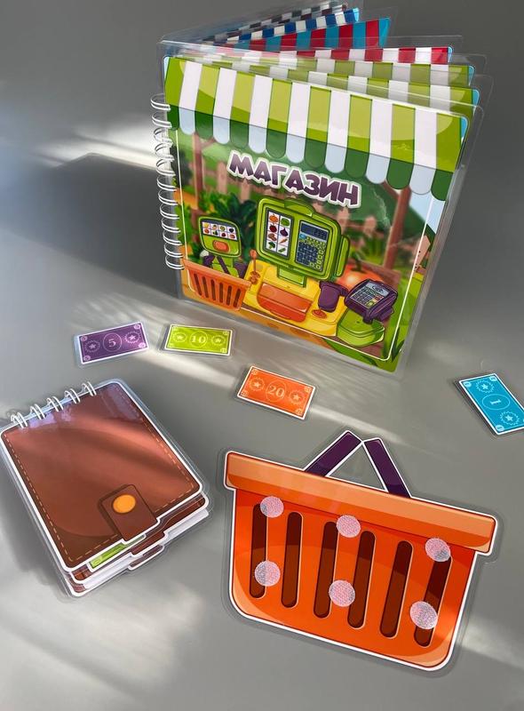Альбом «Магазин» В набор входит: 🧩 Альбом формату 21/21 👛💶 Кошелек и деньги 🗒️ Блокнот для записи затрат 8 оборотов 140 деталей🔥 🧩 Игра направлена на развитие внимания, мышления, мелкой моторики, координации движений, ребенок научится самостоятельно выполнять задачи по образцу, заданным в игровых карточках