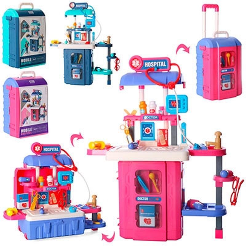 дитячий іграшковий набір Лікар 3в1 (стіл,мийка-ллється вода,мед.інструмент) св,38пр,бат,2кол, 27*39*20см