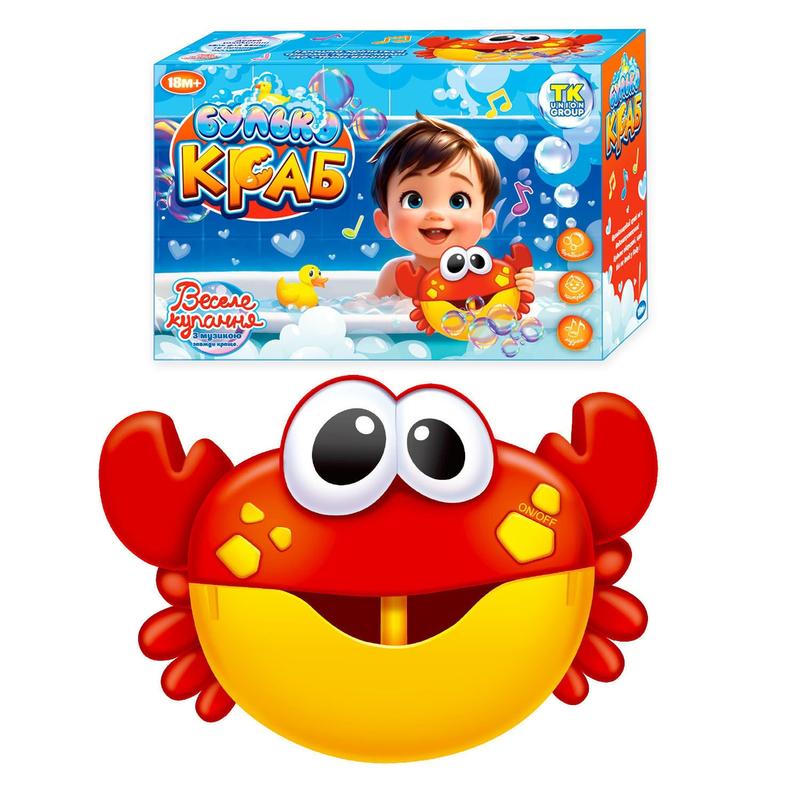 Піноутворювач для ванни "Булькокраб" 65558 (24/2) "TK Group", від батарейок, мелодія, в коробціВідтепер купання малечі стане ще веселішим! Яскравий Булько Краб здатен генерувати неймовірну кількість піни з будь-якого мильного розчину, наповнюючи простір довкола невагомими і пухкими мильними хмаринками.Іграшка працює від батарейок та має 2 режими роботи, при яких може працювати з музичним супроводом та без нього. Просто налийте рідкий гель та розбавте його водою, а потім увімкніть іграшку і насолоджуйтеся неймовірною кількістю пінки. Важливо! Іграшка не є водонепроникною, тому слід бути обережними і не допускати потрапляння води всередину неї. Особливості:- всередині краба розташований піноутворювач;- місткий контейнер для мильного розчину;- 3 присоски;- програвання приємної мелодії; - працює у режимі зі звуком та без нього;- тип живлення - 2 батарейки “АА”,270-00