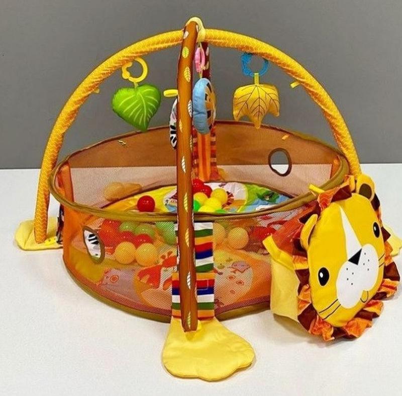 Детский игровой коврик-манеж 3 в 1 с шариками лев