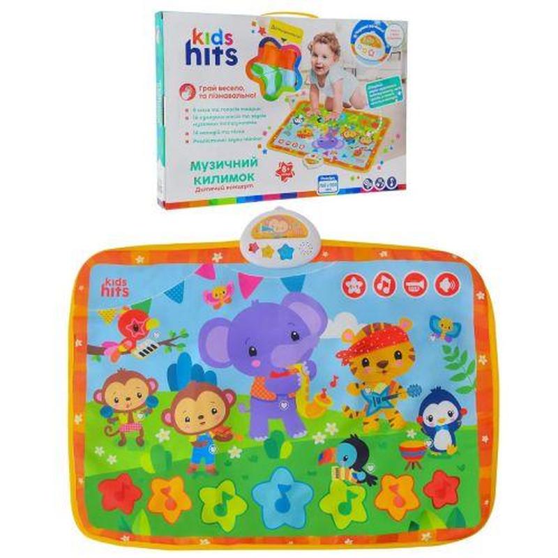 Коврик музыкальный. В комплекте коврик на батарейках. Для включения нужно нажать кнопку вверху и нажимать на животных и мелодии. Воспроизводятся 8 названий и голосов животных, 16 забавных миксов и музыкальных инструментов, 14 мелодий и песня и реалистичные звуки пианино. Также есть волшебные огоньки. Можно переключать режимы и громкость. Очень яркий и милый коврик обязательно понравится ребенку. Поможет развивать когнитивные навыки, сенсорные способности и музыкальный вкус. Бренд: Kids hits Язык: Украинский Упаковка: Коробка Цвет: Разноцвет Тип эл-тов питания: Батарейки (ААА) Кол-во эл-тов питания: 2 Эл-ты питания в комплекте: Есть Вес в упаковке: 320 г Габариты в упаковке: 38 x 4 x 26 см Габариты без упаковки: 70 x 50 x 1 см Cтрана производитель: Китай Материал: Комбинированный Комплектация: Коврик