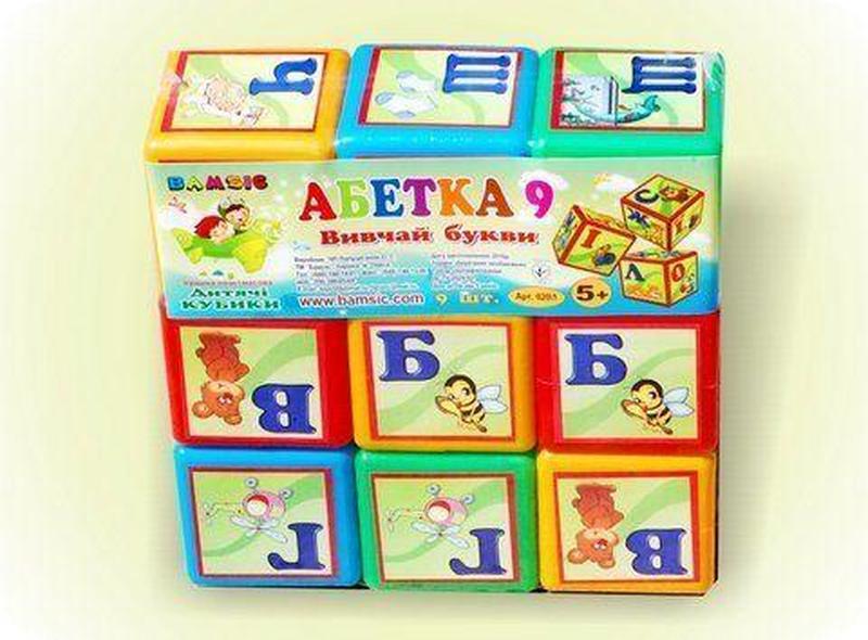 Кубики "Абетка", 9 шт. (средние)._ Бренд: Bamsic Упаковка: Пакет Цвет: Разноцвет Габариты в упаковке: 8 x 24 x 24 см Габариты без упаковки: 8 x 8 x 8 см Материал: Пластик