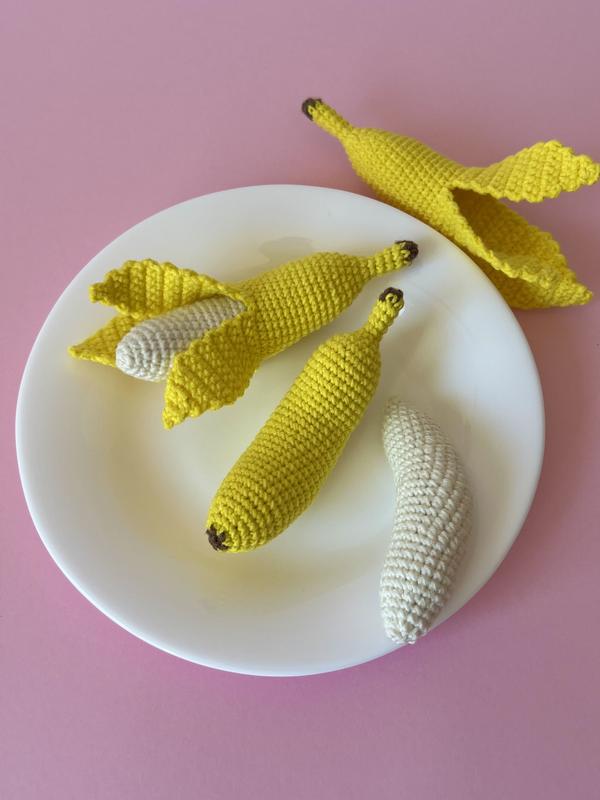 Іграшковий в‘язаний «Банан». Зроблений з природних, натуральних, гіпоалергенних матеріалів. Дуже м‘який та приємний на дотик. Пряжа: бавовна - 55%, акріл - 45%. Наповнювач: холлофайбер. Розміри: Банан закритий в довжину -10,5 см. Банан відкритий в довжину -11,5 см. Відкритий банан🍌складається з двох частин, начинку можна спокійно відділити від кожури банана. Ціна за відкритий банан - 80 грн. Ціна за закритий банан - 60 грн. Пакування: екологічна, переробна упаковка. Ціна вказана за 1 шт! Мінімальна сума замовлення 300 грн (на цю суму можете вибрати любі продукти, які подобаються)!