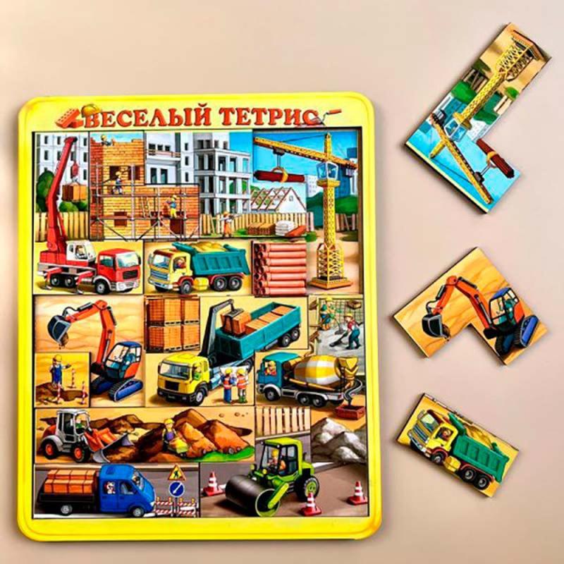 Нужно разместить тематические фигурки так, чтобы все разместились на планшете по примеру (в наборе идет картинка-подсказка) и можно будет увидеть строительную площадку с разной техникой. Сосчитайте всю технику на площадке и объясните, какая функция каждой во время строительства.